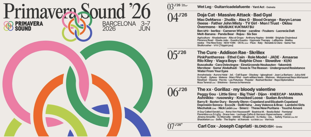 Primavera Sound Festival Barcelona have today unveiled the day splits for the 2026 instalment of the festival.